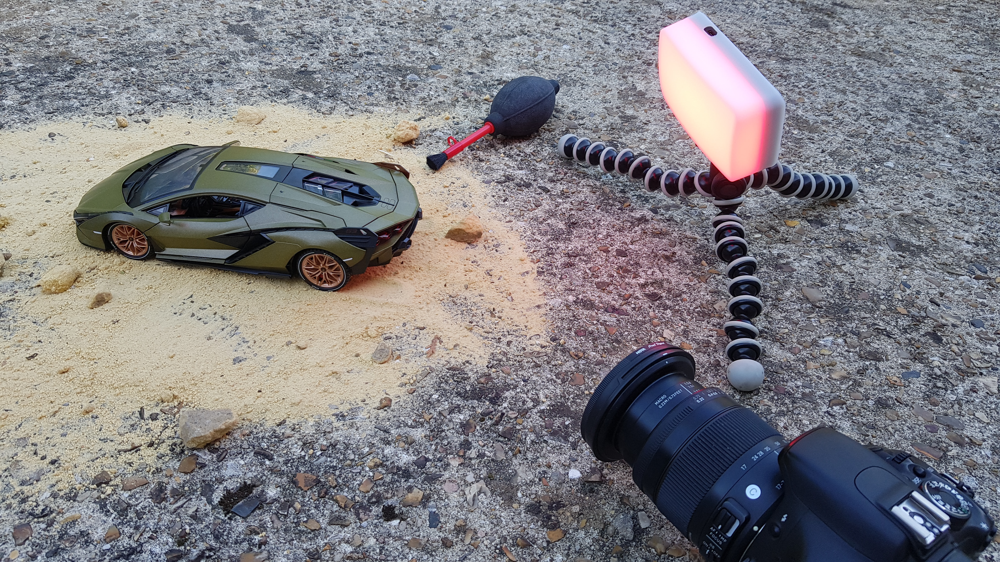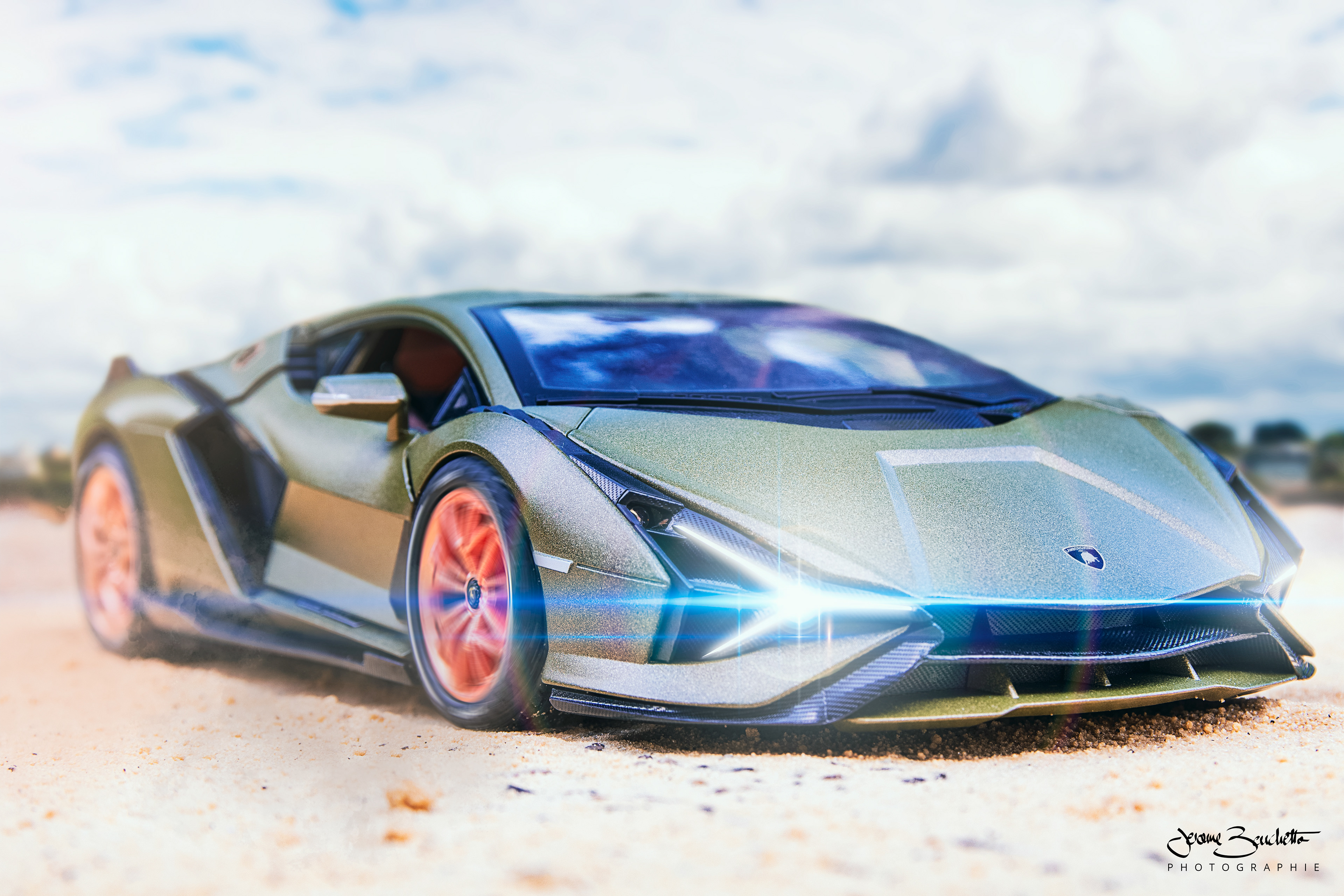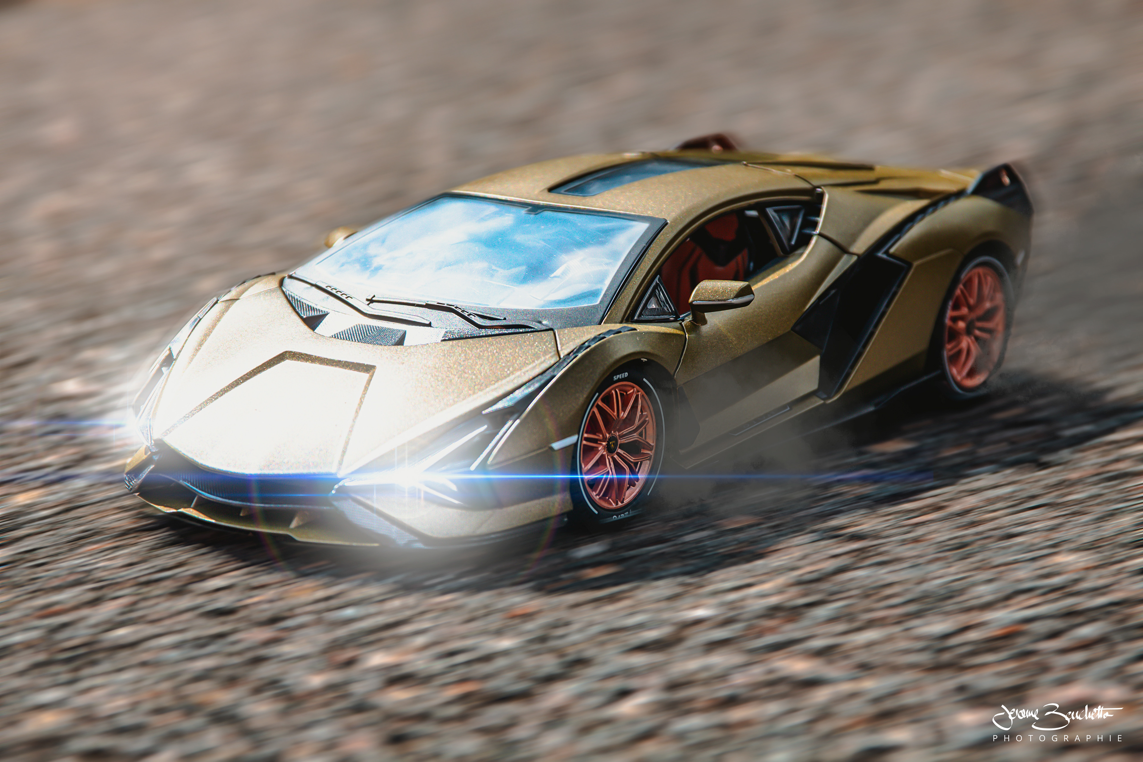 Shooting photo de jouet mettant en scène la Lamborghini Sian au format 1/24e.